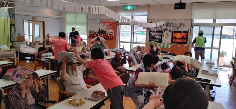 本番!地震発生!! 頭を守って下さい