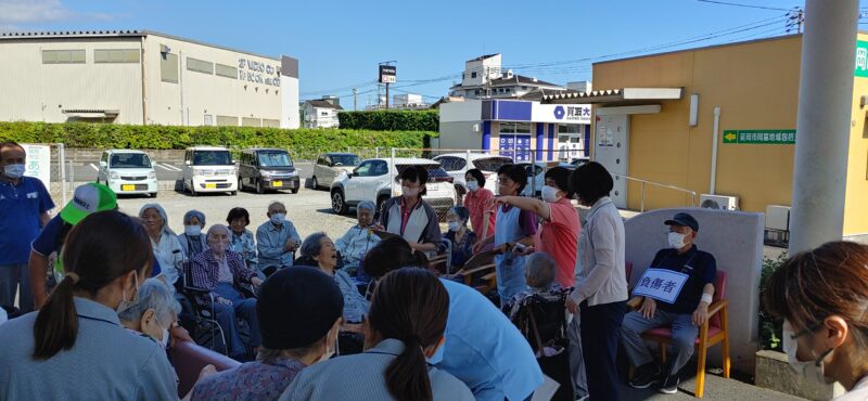 <岡デイ> 地震、火災の避難連をしました