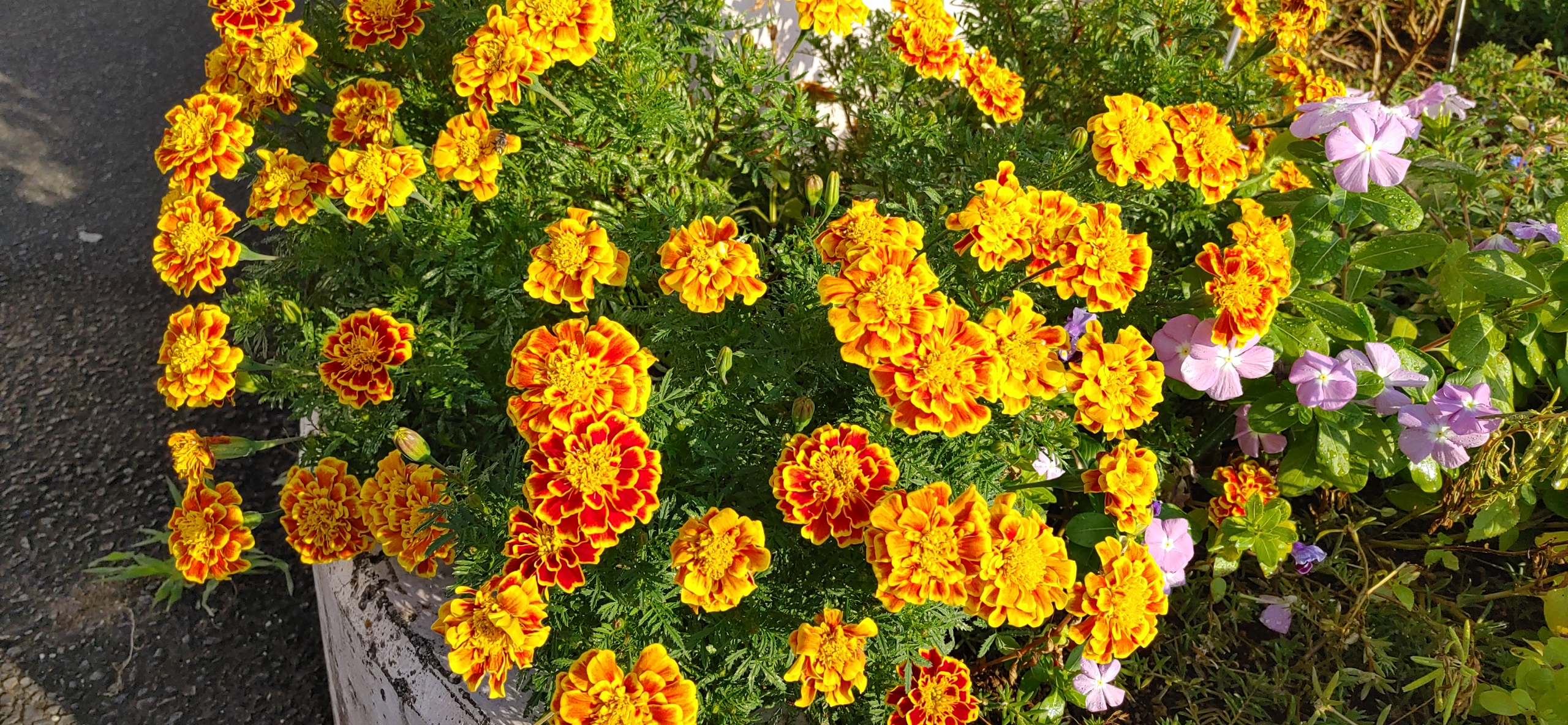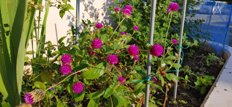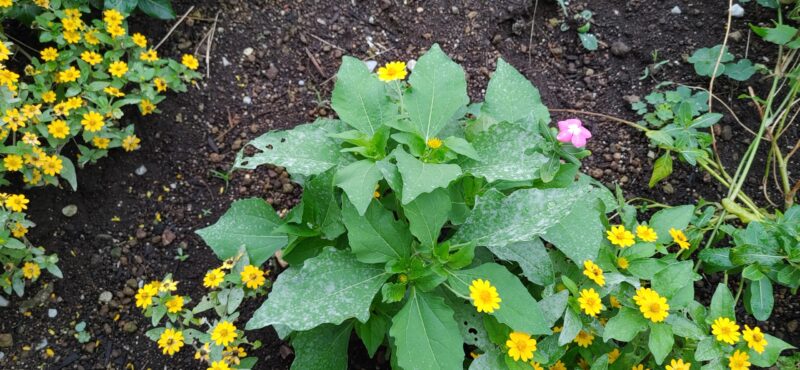 いたるところに、背が高く、葉が大きいメランポジウム。