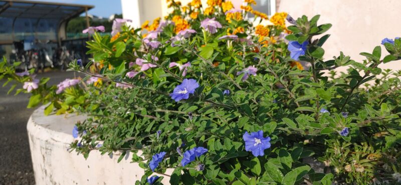 アメリカンブルーもまだきれいです。でも、夏が暑すぎたせいか、今年は花が少ないです。