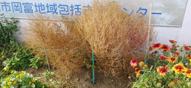 コキア(ほうき草)は、緑から紅、そして、もう箒にしても良い色になりました。