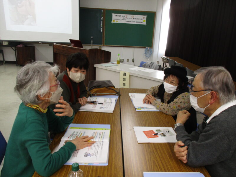 1月29日(木) 今年度最後の介護教室が行われました。今回は「認知症の人と家族の会」 宮崎県支部副代表 吉田真由美氏を講師に、「介護の悩み・相談・グループワーク・看取り」をテーマに講話をいただきました。